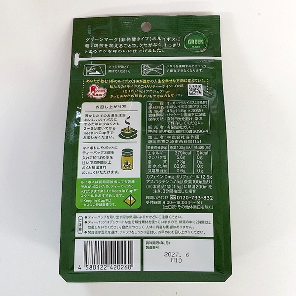 〇健康効果の高いこだわりのグリーンルイボス茶葉使用