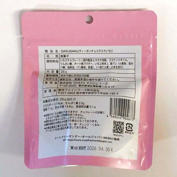 植物性原料100%のヴィーガンチョコラスク いちご味です。ココナッツオイルを新たに加えることで、よりコクのあるいちごチョコ感に仕上げました。