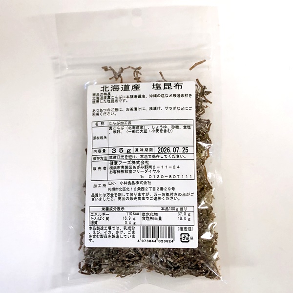 北海道道南産真昆布の白口浜昆布に、小豆島本醸造醤油・沖縄のシママース塩・京都富士酢などの厳選素材を使用した塩昆布です。