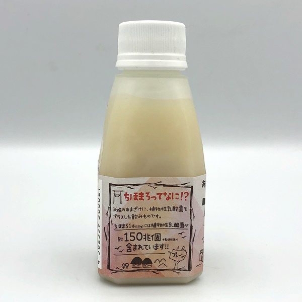 お酒が飲めないどぶろく隊の隊長が自分も飲める製品をと、どぶろく造りの発酵技術と地のお米を使った甘酒と植物乳酸菌でちほまろが生まれました。