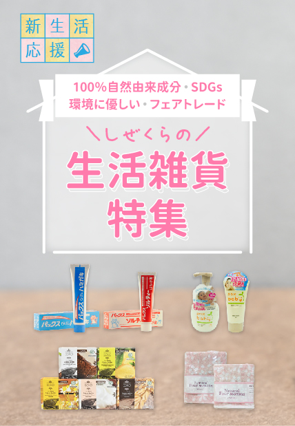 また、タオルなどの雑貨類については、環境負荷の少ない自然素材でできたもの(土に埋めれば地球に還るもの)や、貧しい方々への支援につながる商品を選んでいます。